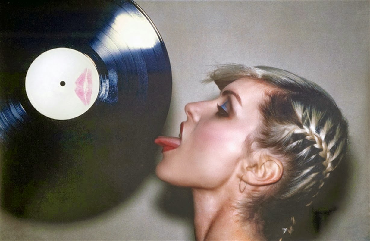 Zugabe: Debbie licking the edge of a 12 inch vinyl LP, 1972 - via vintage everyday